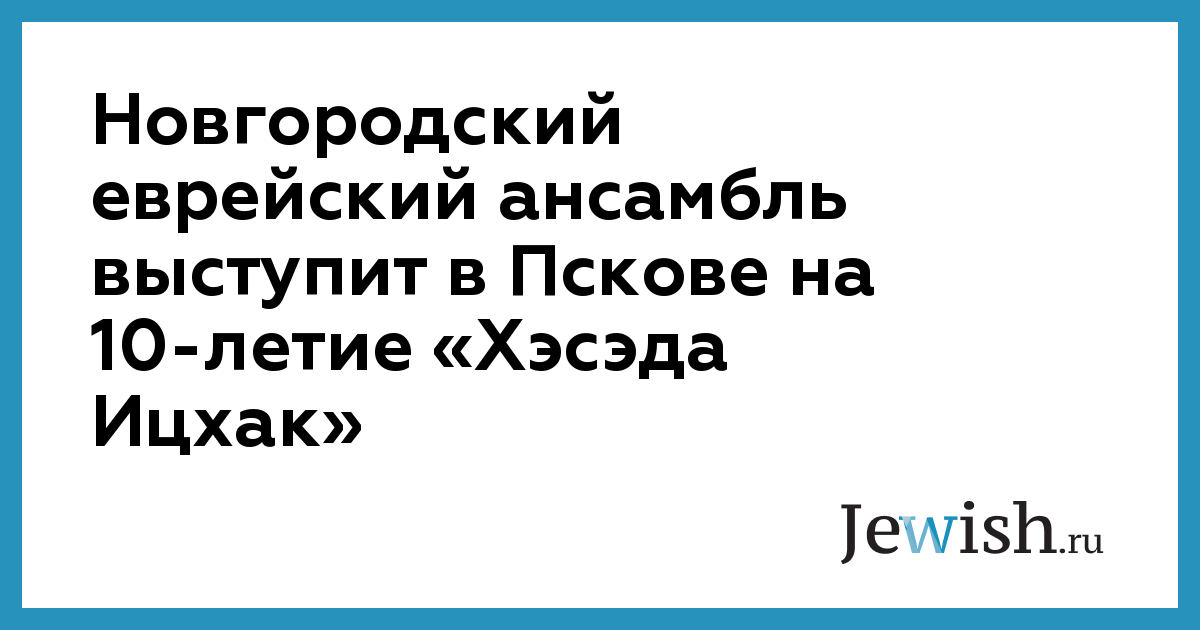 Новгородский еврейский ансамбль выступит в Пскове на 10-летие «Хэсэда Ицхак»