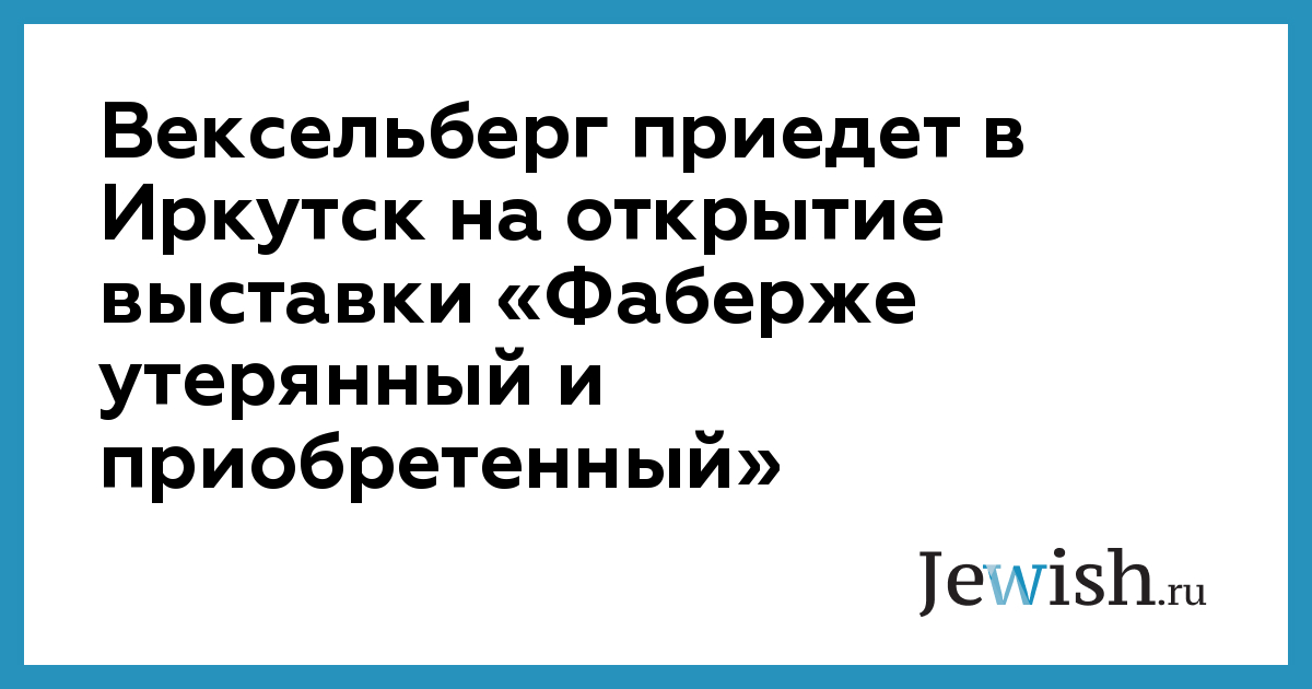 Крупный российский бизнесмен Виктор Вексельберг приедет в Иркутск на открытие выставки «Фаберже утерянный и приобретенный», которая будет проходить в Иркутском областном художественном музее им. В.П. Сукачева. Как сообщила на пресс-конференции 9 февраля директор музея Елена Зубрий, выставку планировалось открыть 7 марта, но у Виктора Вексельберга какие-то дела в Европе, поэтому выставка откроется в середине марта, так как владельцу коллекции хотелось присутствовать на открытии.