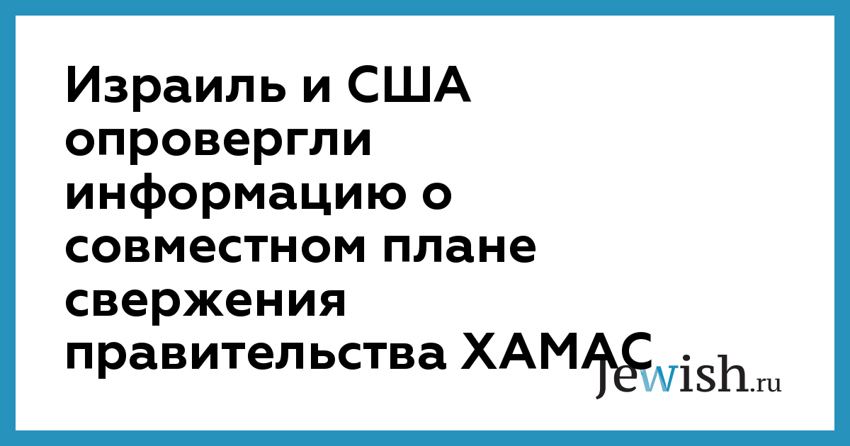 Израиль и США опровергли информацию о совместном плане свержения правительства ХАМАС