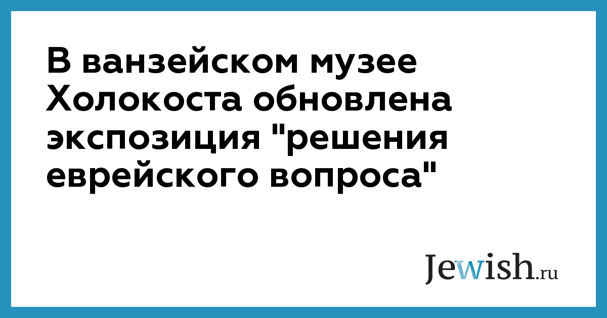 В музее, расположенном в Ванзее, на вилле в пригороде Берлина, где нацистские лидеры формировали свои зловещие планы геноцида еврейского народа, обновлена экспозиция, посвященная «окончательному решению еврейского вопроса». К очередной годовщине зловещей даты Ванзейской конференции (20 января 1942 года) ее пополнили ранее недоступные материалы, прибывшие сюда из Восточной Европы и России, рассказал директор музея Норберт Камп.