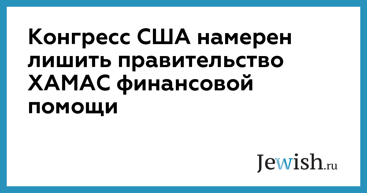 Конгресс США намерен лишить правительство ХАМАС финансовой помощи