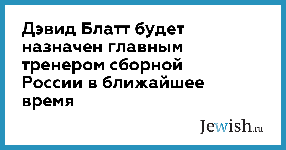 Дэвид Блатт будет назначен главным тренером сборной России в ближайшее время