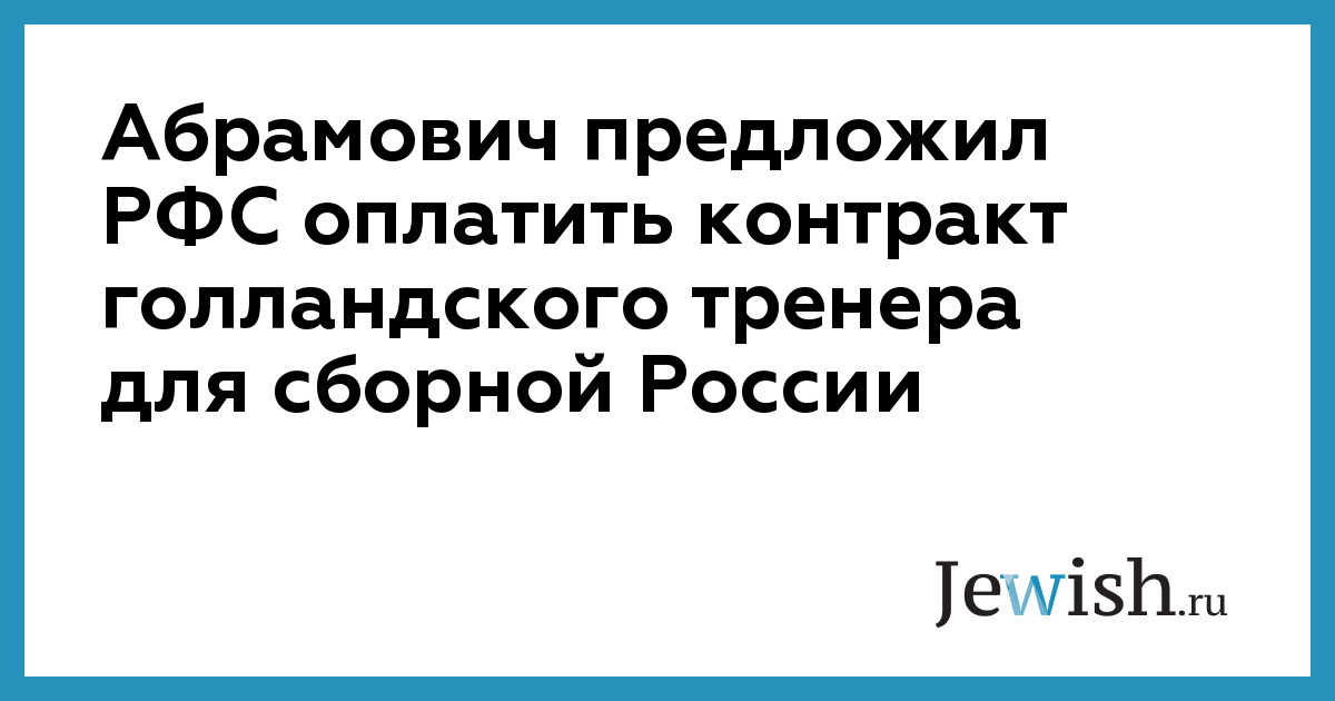 Абрамович предложил РФС оплатить контракт голландского тренера для сборной России