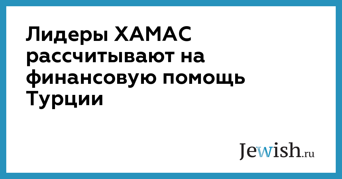 Лидеры ХАМАС рассчитывают на финансовую помощь Турции
