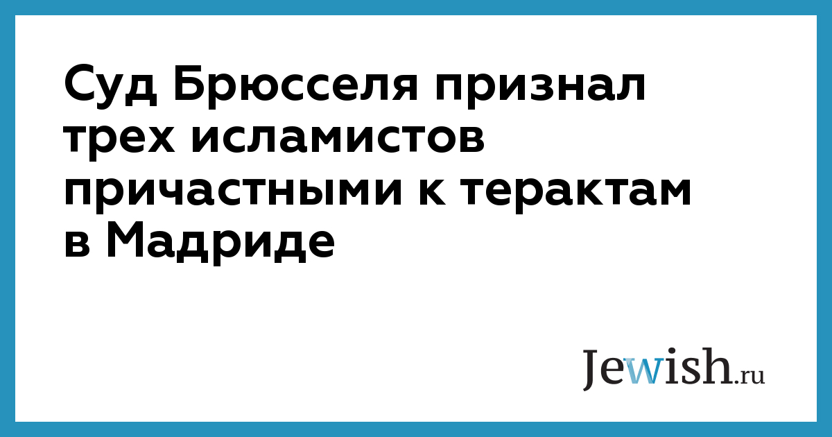 Бельгийский суд признал трех исламистов виновными в принадлежности к группировке, связанной с терактами в Мадриде и Касабланке. Они являются основными подозреваемыми среди 13 подсудимых, дело которых рассматривается в Брюсселе, сообщает ВВС.