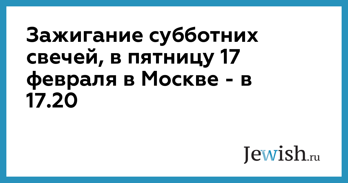 Зажигание субботних свечей, в пятницу 17 февраля в Москве — в 17.20