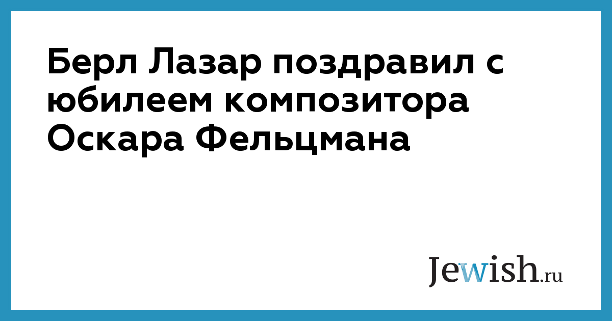 Берл Лазар поздравил с юбилеем композитора Оскара Фельцмана