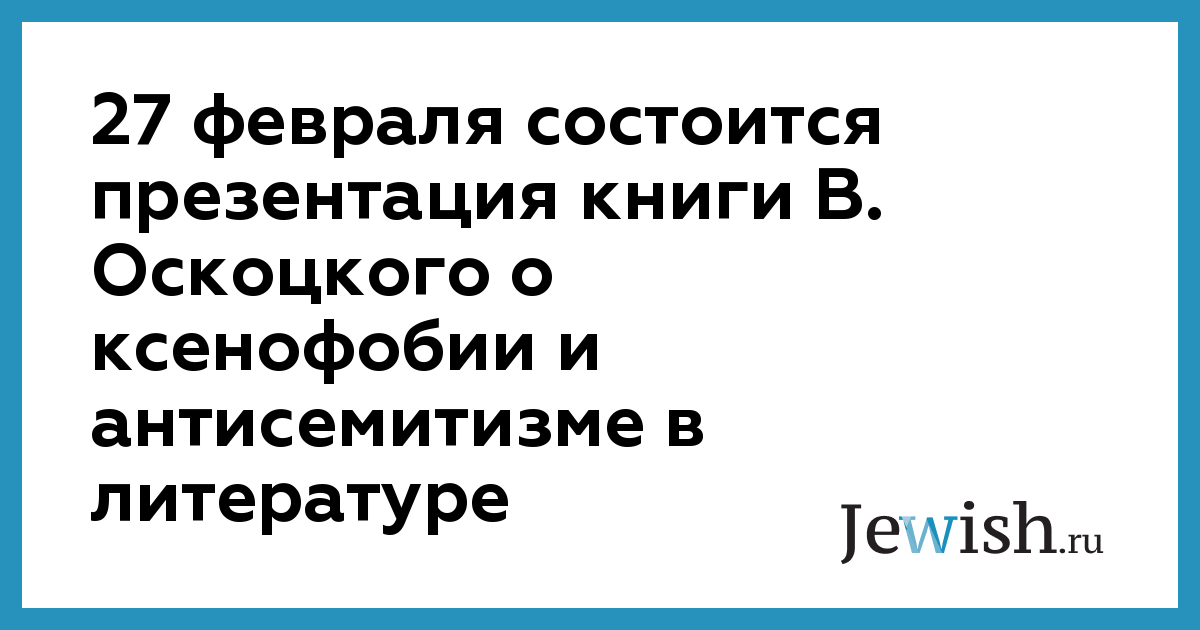 27 февраля состоится презентация книги В. Оскоцкого о ксенофобии и антисемитизме в литературе
