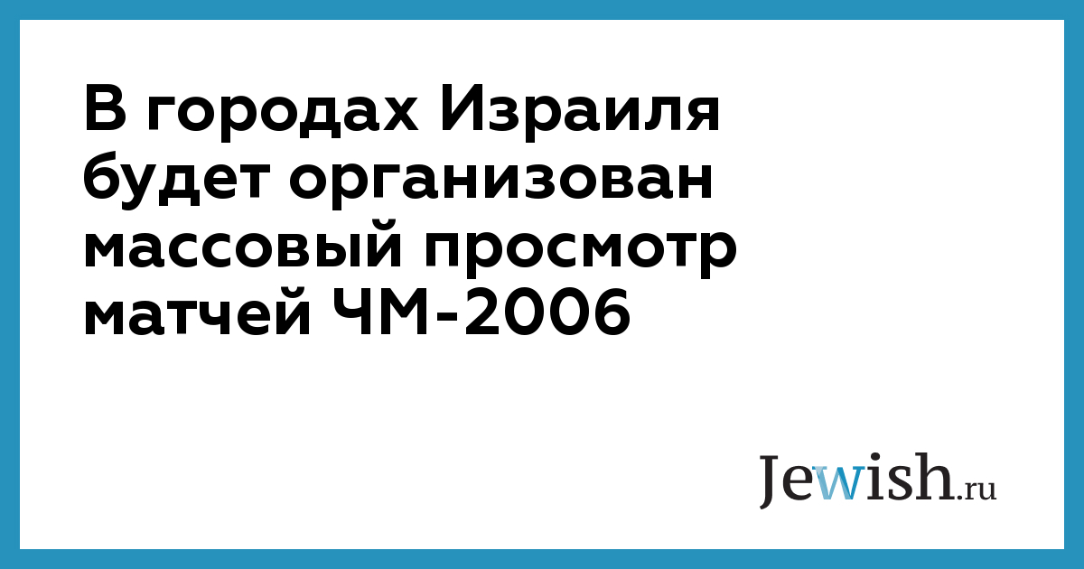 В городах Израиля будет организован массовый просмотр матчей ЧМ-2006