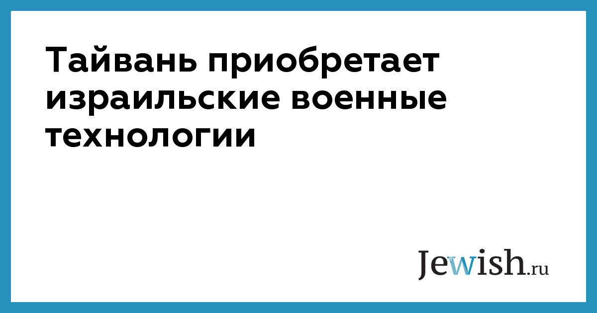 Тайвань планирует укрепить свою обороноспособность с помощью израильских технологий, сообщает Mignews со ссылкой на западные информационные агентства.