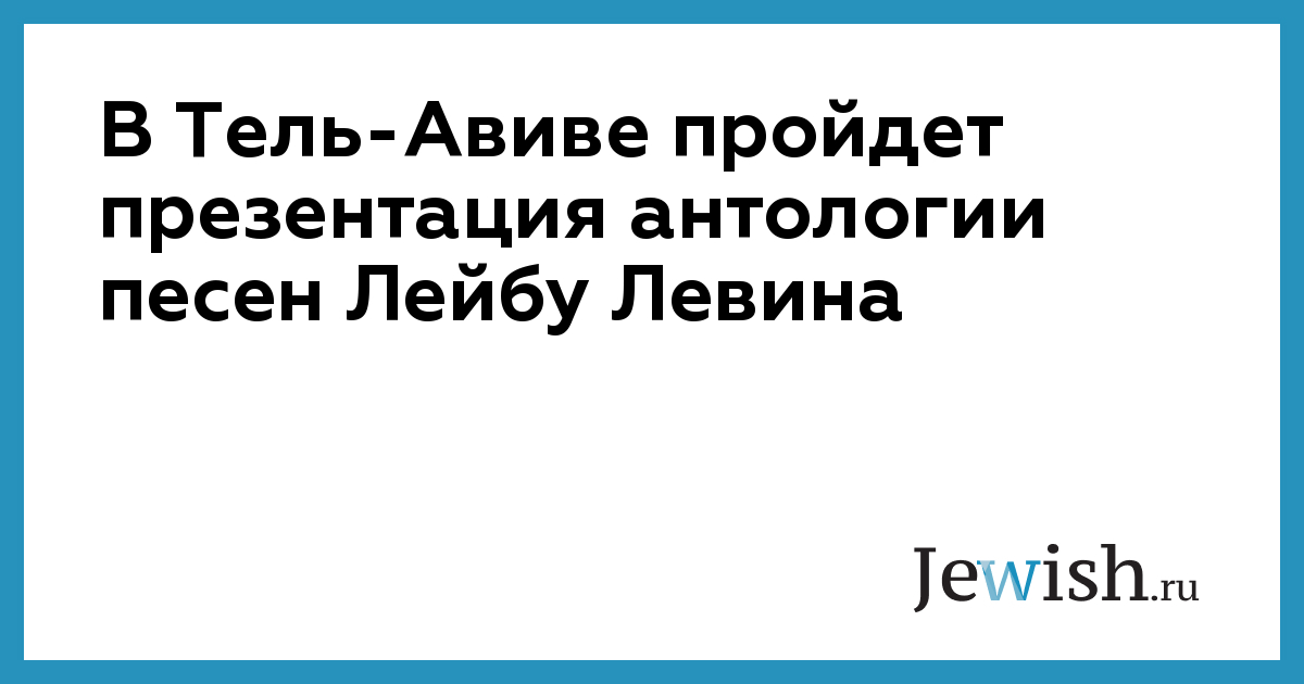 11 марта в тель-авивском центре идиш-культуры "Баит бе-Бренер" состоится презентация антологии песен самобытного еврейского композитора Лейбу Левина, сообщает Седьмой канал.