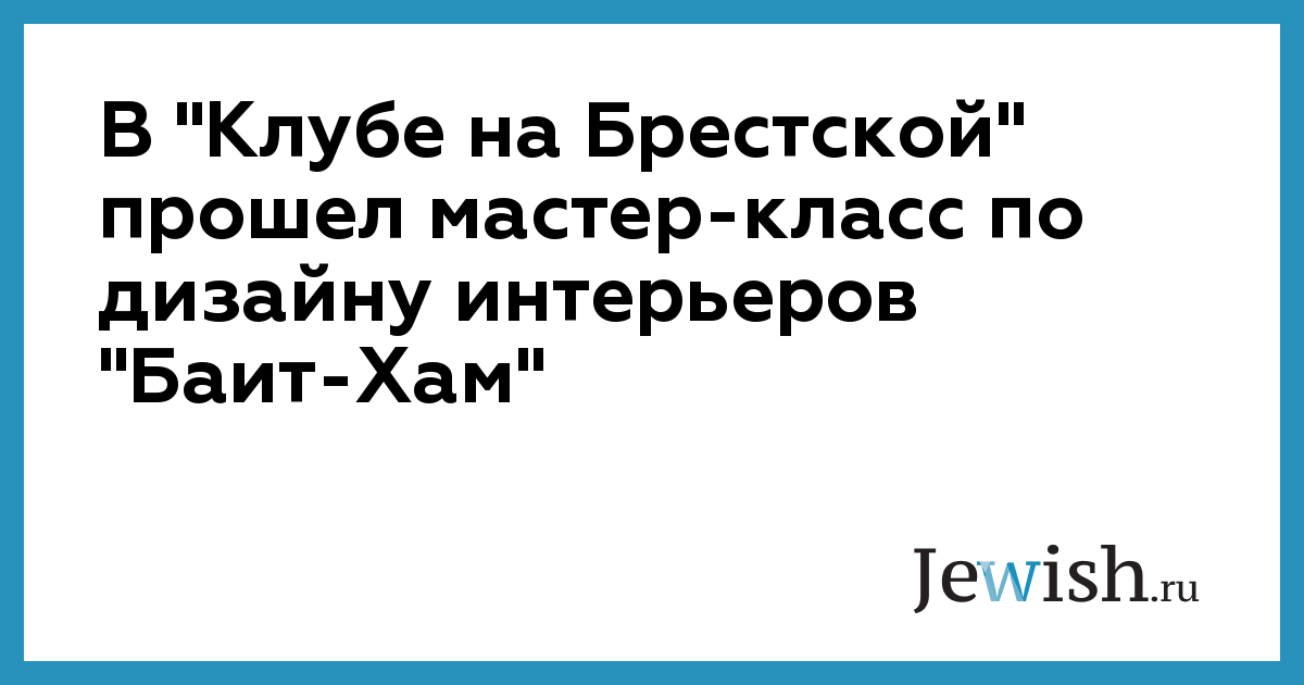 19 февраля в «Клубе на Брестской» прошел мастер-класс по дизайну интерьеров «Баит-Хам». Вел его преподаватель колледжа дизайна «Вицо» в Хайфе (отделение дизайна интерьеров), архитектор, лауреат ряда израильских архитектурных конкурсов Алекс Черняков.
