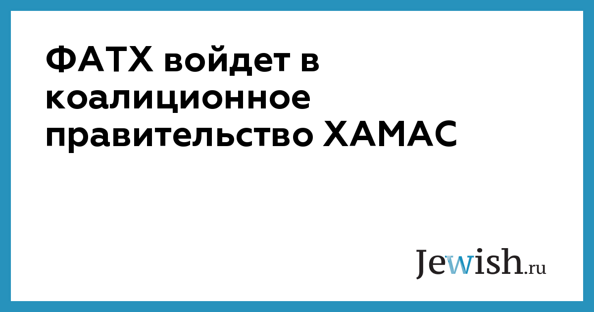Палестинское движение ФАТХ решило войти в коалиционное правительство, которое сформирует группировка ХАМАС. Об этом сообщил лидер фракции ФАТХа в палестинском парламенте Ахзам аль-Ахмед, сообщает Лента.ру со ссылкой на AFP.