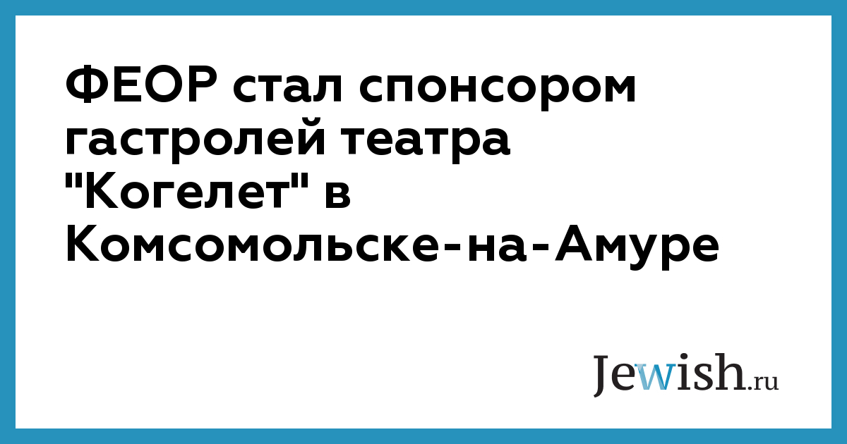 ФЕОР стал спонсором гастролей театра "Когелет" в Комсомольске-на-Амуре