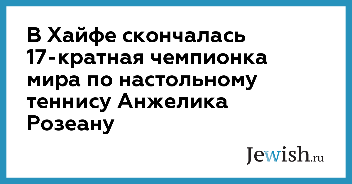 Семнадцатикратная чемпионка мира по настольному теннису среди женщин Анжелика Розеану-Эдельштейн скончалась 21 февраля в израильском городе Хайфа в возрасте 84 лет.