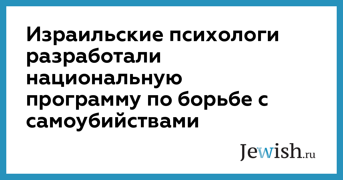 В виду сложившейся ситуации несколько ведущих израильских психологов и психиатров, таких, как профессор Исраэль Ор-Бах, доктор Йоси Гарель, доктор Хана Бар-Йосеф и других разработали национальную программу по борьбе с суицидом и подали ее на прошлой неделе на рассмотрение министру здравоохранения. Среди основных пунктов этой программы – оказание бесплатной психологической помощи, информирование общественности о средствах профилактики депрессий, недоступность орудий самоубиства – ограждения на крышах высотных зданий, продажа успокоительных лекарств в малых дозах и так далее.