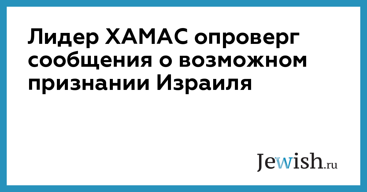 Лидер ХАМАС опроверг сообщения о возможном признании Израиля