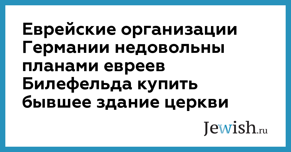 Центральный совет евреев в Германии и христианские организации выражают недовольство по поводу планов еврейской общины города Билефельд приобрести здание бывшей евангелической церкви для создания в нем синагоги, сообщает "Русская Германия".