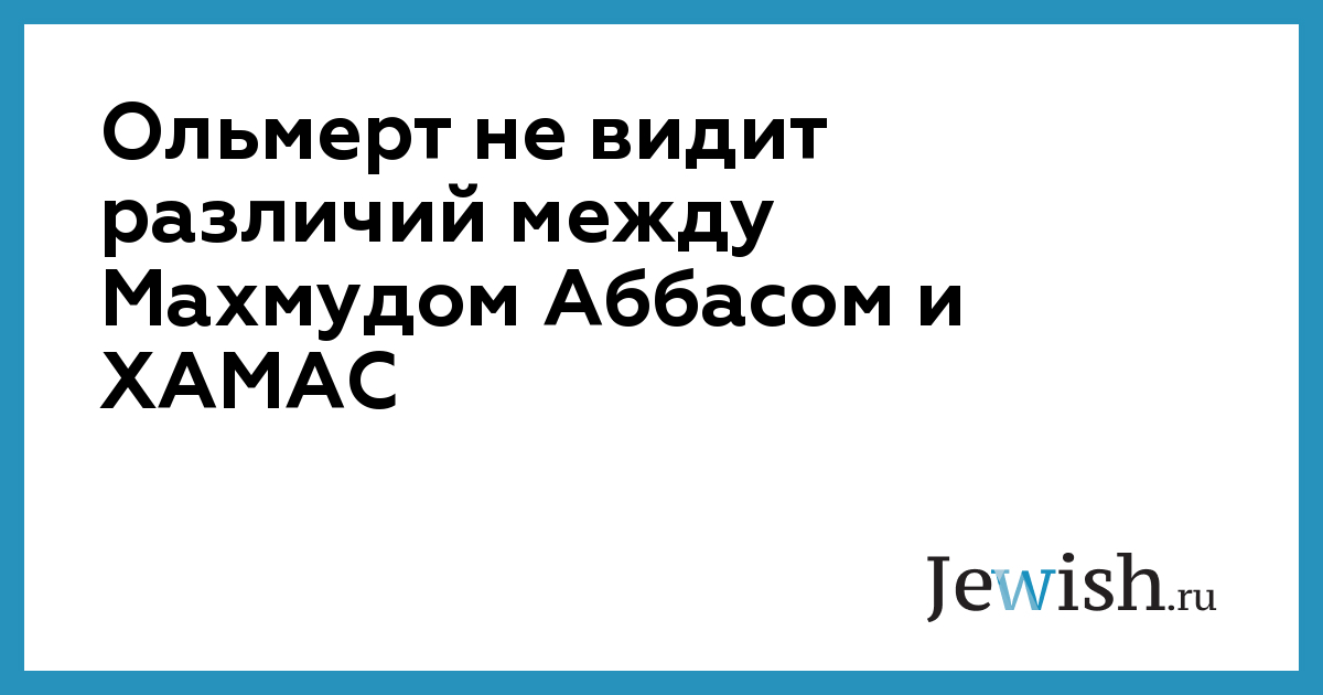 Исполняющий обязанности премьер-министра Израиля Эхуд Ольмерт призвал не делать различия между председателем ПНА Махмудом Аббасом, пользующимся поддержкой мирового сообщества, и радикальным движением ХАМАС. Как сообщает израильская пресса, с таким заявлением Ольмерт выступил в воскресенье навстрече с заместителем госсекретаря США Дэвидом Уэлчем.