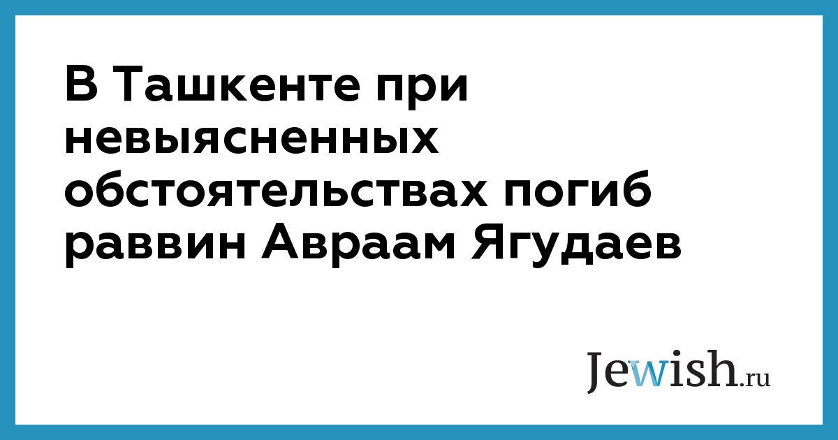 В среду 23 февраля в Ташкенте произошло трагическое событие. Председатель ташкентской синагоги раввин Авраам Ягудаев рано утром был обнаружен на обочине дороги в районе старогородского рынка Ташкента без сознания. Официальная версия следствия — дорожно-транспортное происшествие.