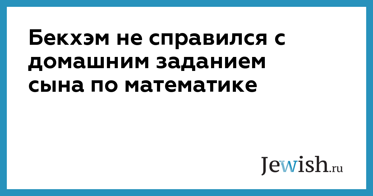 Капитан английской футбольной сборной Дэвид Бекхэм в воскресенье пожаловался корреспонденту еженедельника «Mail Sunday» на то, что не сумел помочь своему 6-летнему сыну Бруклину сделать домашнее задание по математике.