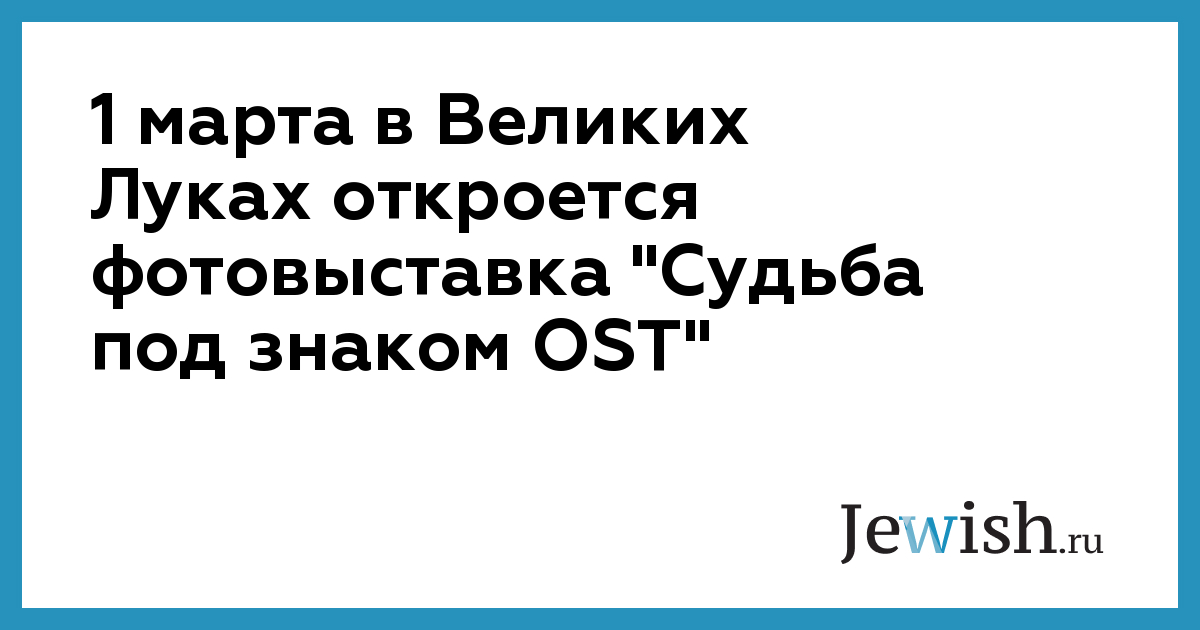 1 марта в Краеведческом музее Великих Лук откроется фотовыставка «Судьба под знаком OST». Как сообщили корреспонденту ПАИ в музее, на выставке будут представлены копии документов и фотографий, предоставленные различными архивами, в том числе секретным архивом ФСБ. Выставка организована при активном участии великолукского отделения общества «Мемориал».