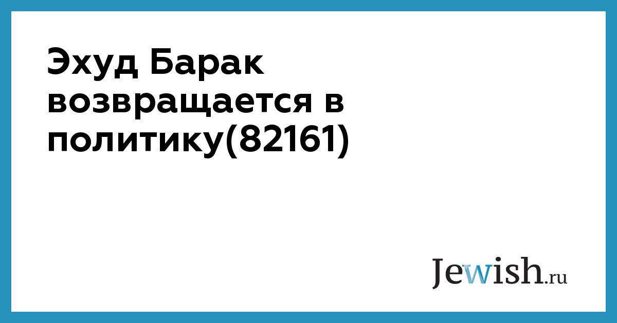 Бывший глава правительства Эхуд Барак заявил о том, что возвращается в политическую жизнь страны и будет участвовать в предвыборных встречах активистов партии "Авода" с избирателями.