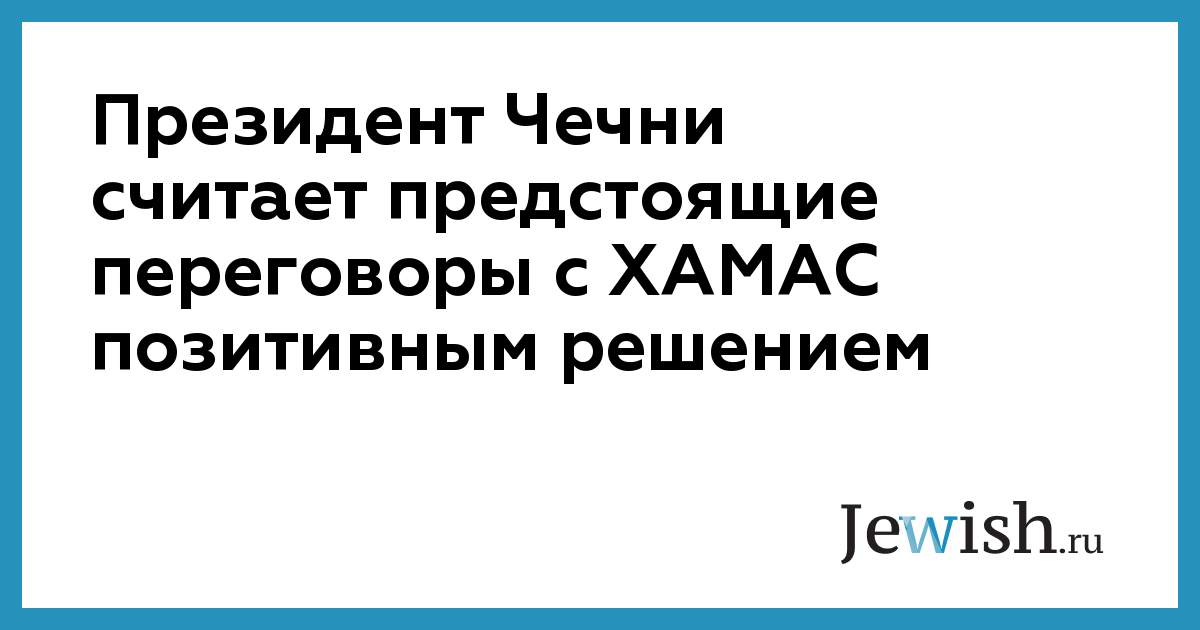 Президент Чечни считает предстоящие переговоры с ХАМАС позитивным решением