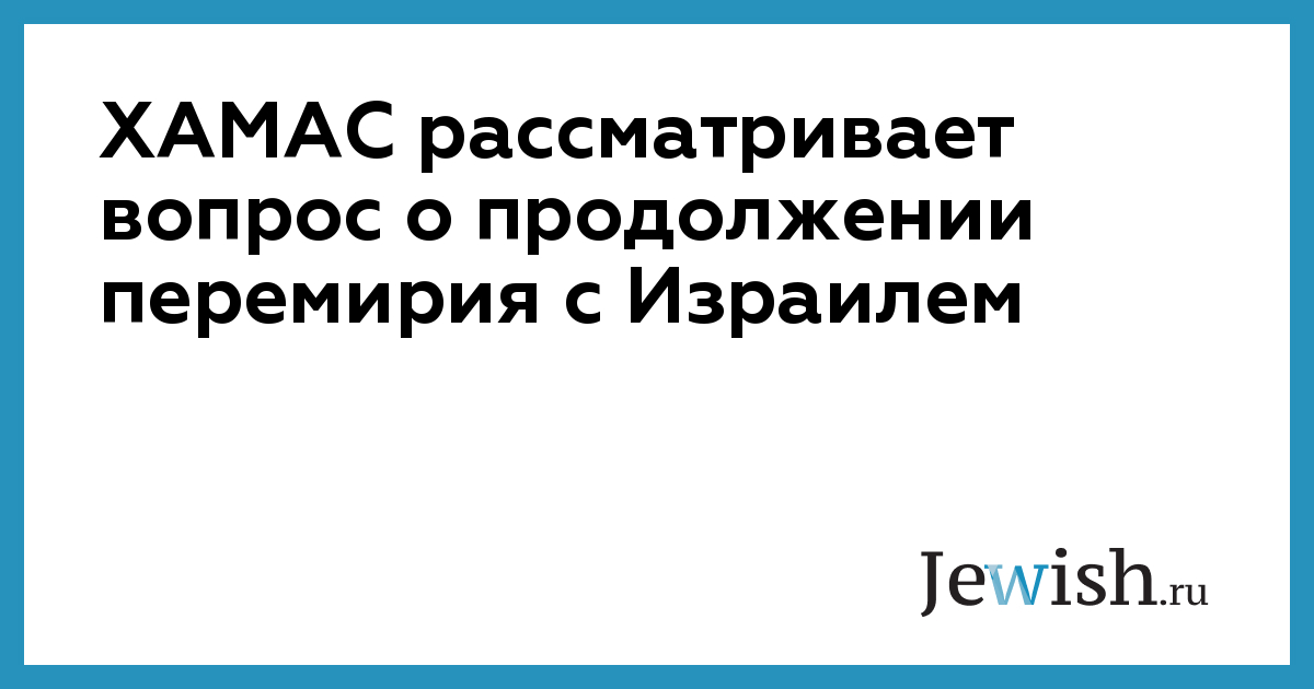 ХАМАС рассматривает вопрос о продолжении перемирия с Израилем