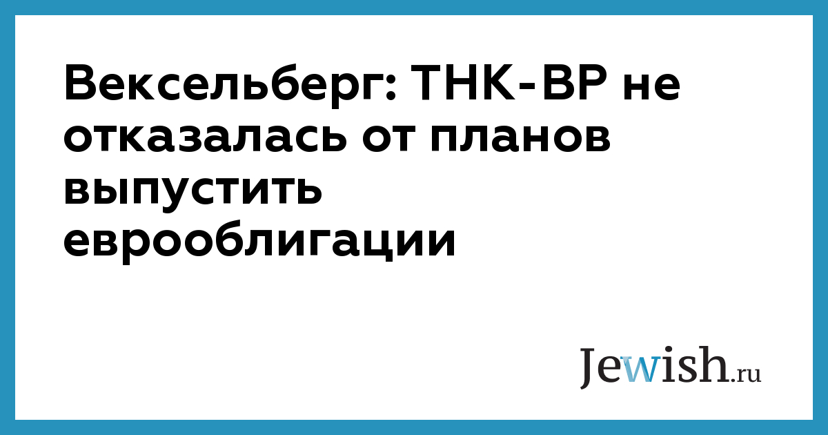 ТНК-BP не отказалась от планов выпустить еврооблигации в текущем году после того, как в феврале 2006 г. привлекла кредит на сумму около $1 млрд. Об этом сообщил журналистам член Совета директоров компании Виктор Вексельберг. Он отказался уточнить объем планируемого выпуска и сроки его размещения, отмечает АК&М.