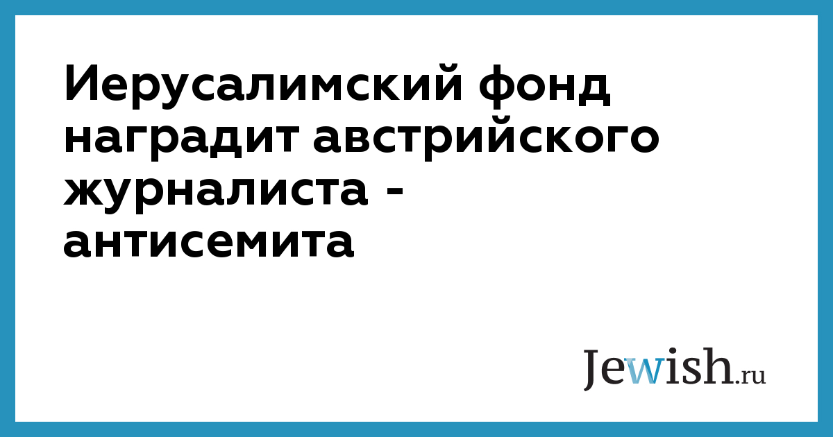 Иерусалимский фонд наградит австрийского журналиста — антисемита