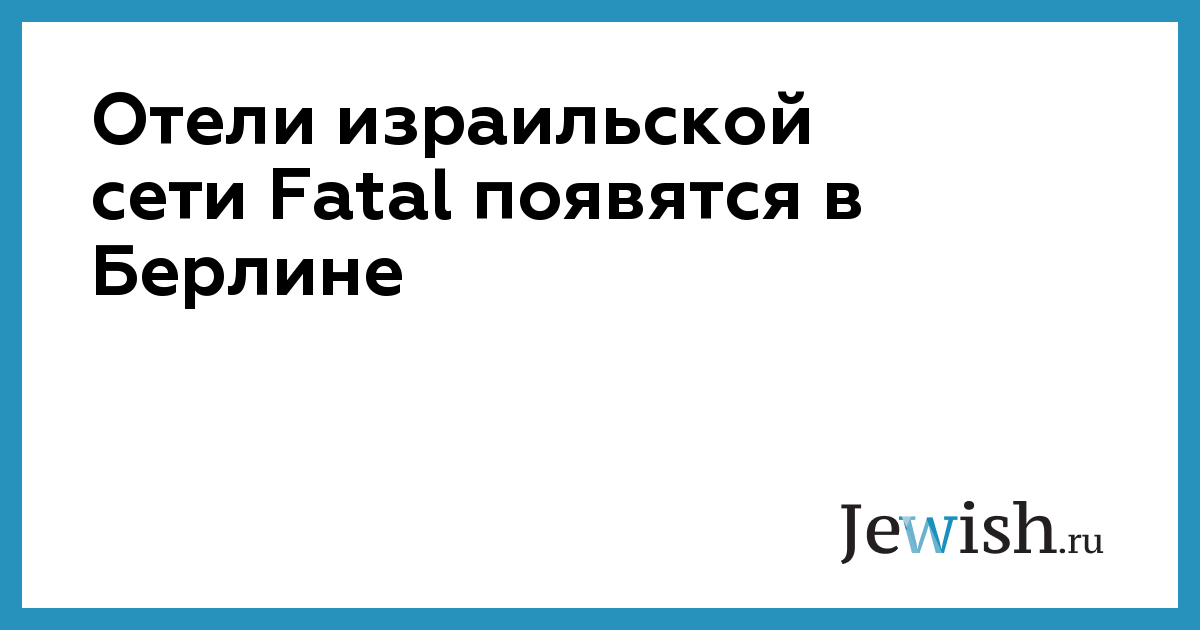 Отели израильской сети Fatal появятся в Берлине