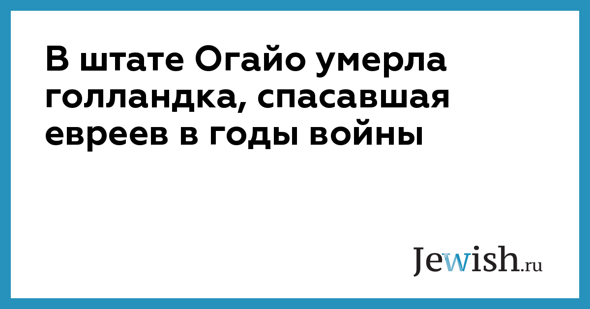 В штате Огайо умерла голландка, спасавшая евреев в годы войны