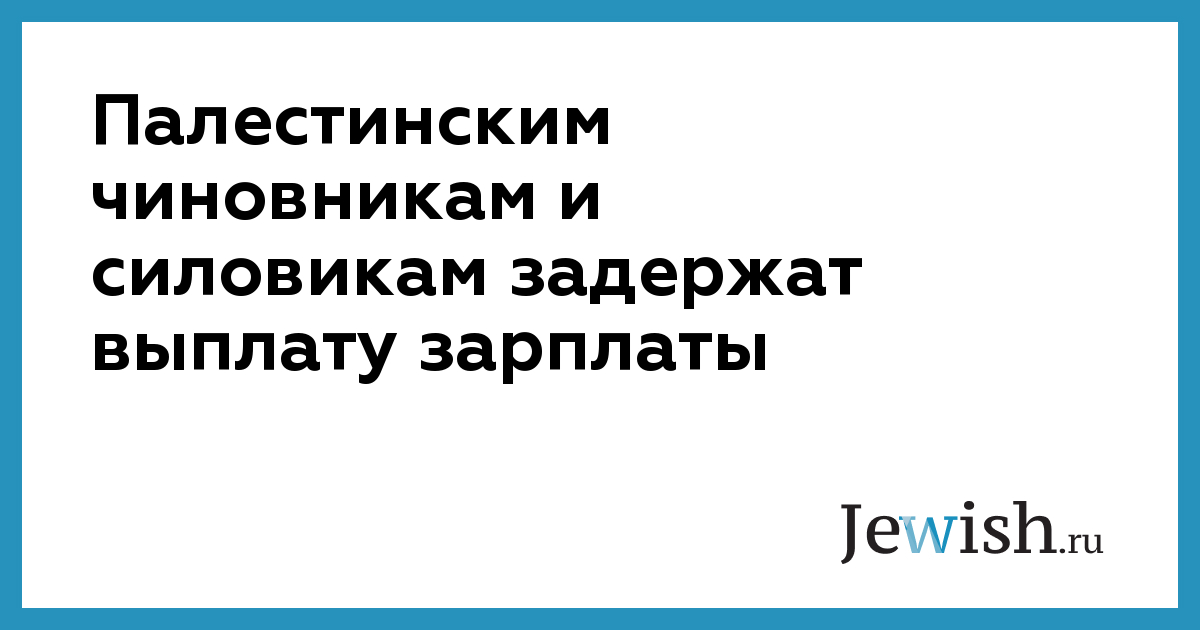 Власти Палестинской автономии задержат примерно на две недели выплату зарплаты 140 тыс. служащих и сотрудников правоохранительных органов в связи с невыплатой Израилем средств, собранных при взимании налогов.