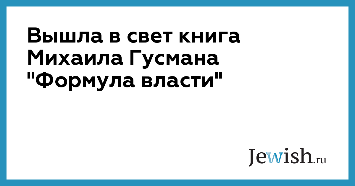 Вышла в свет книга Михаила Гусмана "Формула власти"