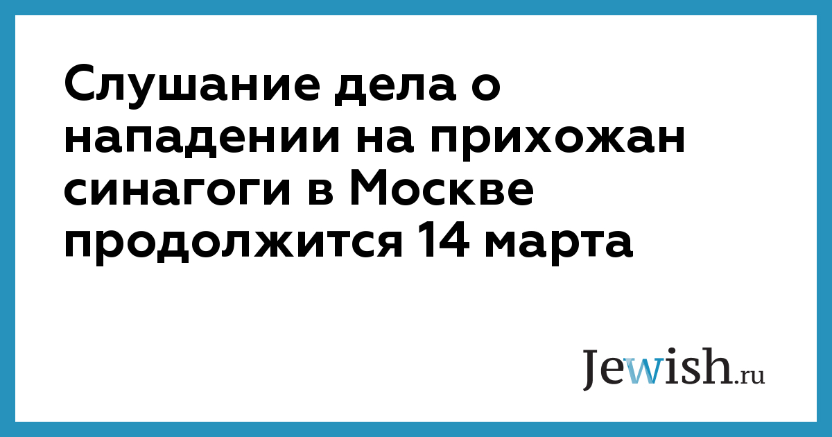 Процесс по делу о нападении на прихожан московской синагоги продолжится 14 марта, сообщили РИА Новости в Мосгорсуде.