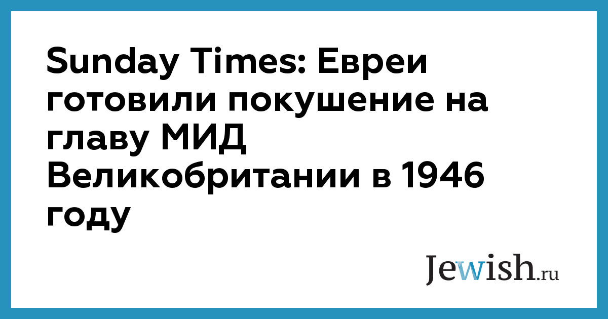 Sunday Times: Евреи готовили покушение на главу МИД Великобритании в 1946 году