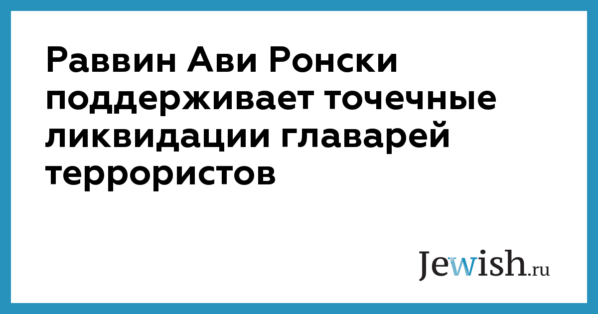 Раввин Ави Ронски поддерживает точечные ликвидации главарей террористов