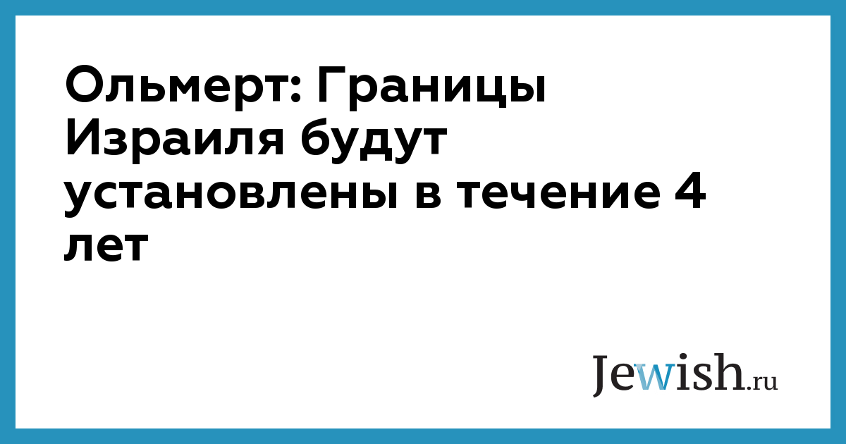 Постоянные границы государства Израиль будут установлены в течение четырех лет. Об этом в интервью израильской газете "Иерусалим пост" заявил исполняющий обязанности премьер-министра Израиля Эхуд Ольмерт.