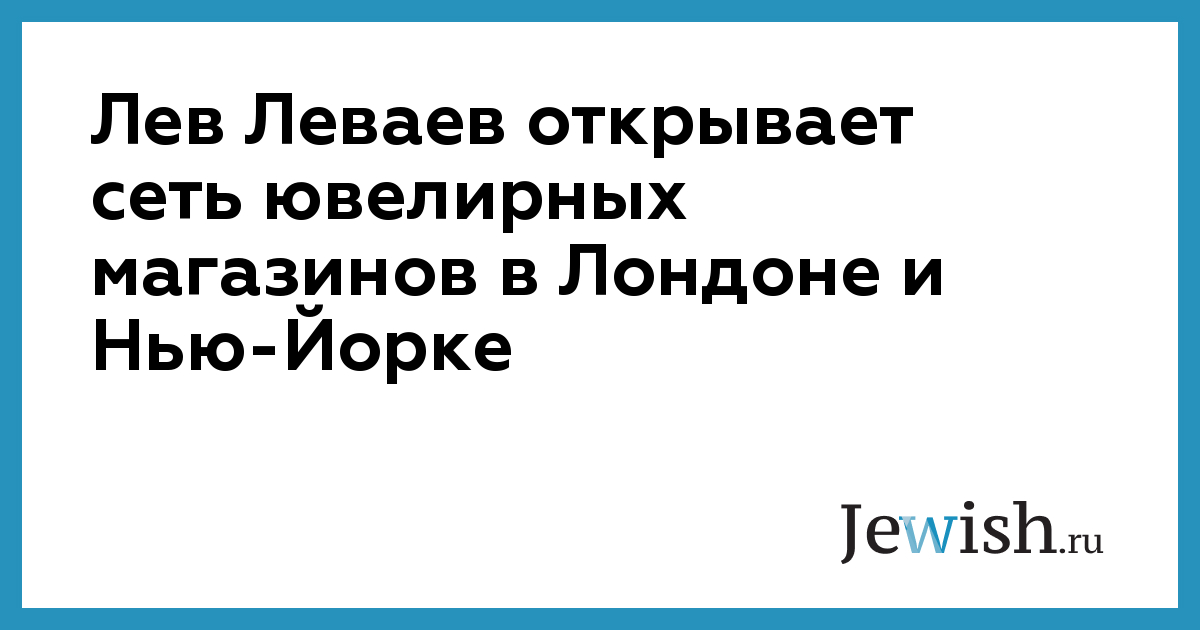 Израильский бизнесмен Лев Леваев расширяет сферу торговли бриллиантами и открывает сеть ювелирных магазинов в Нью-Йорке и Лондоне. В магазинах будут продаваться драгоценные украшения, стоимость которых превышает миллион долларов, сообщает Newsru.co.il.