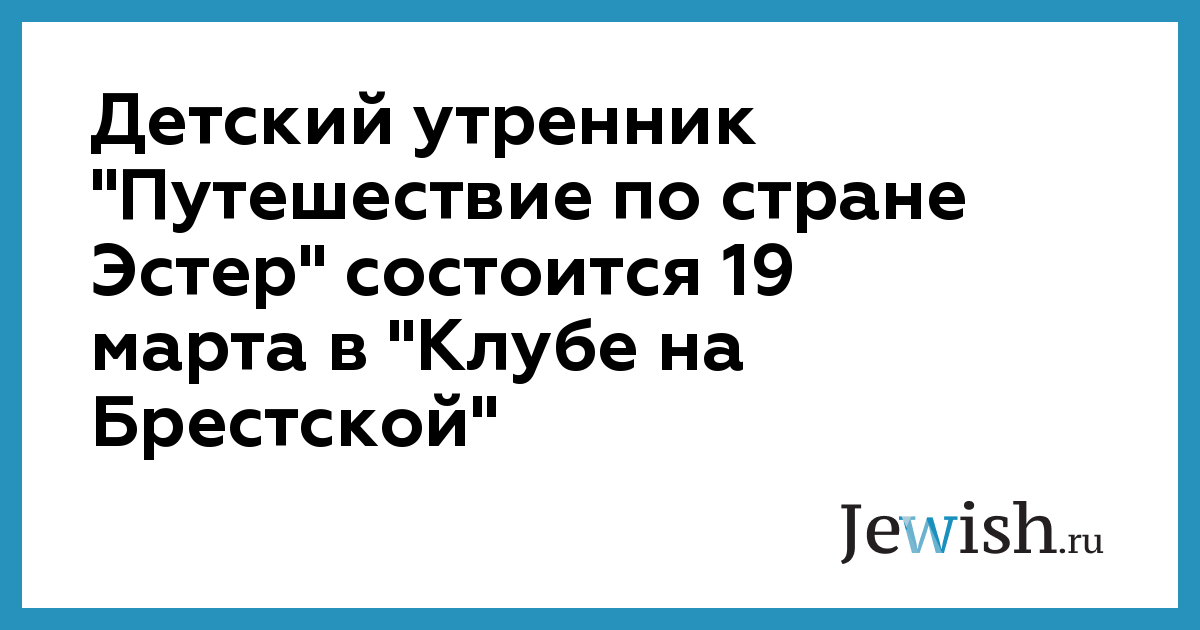 Детский утренник "Путешествие по стране Эстер" состоится 19 марта в "Клубе на Брестской"