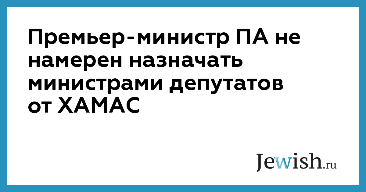 Премьер-министр ПА не намерен назначать министрами депутатов от ХАМАС