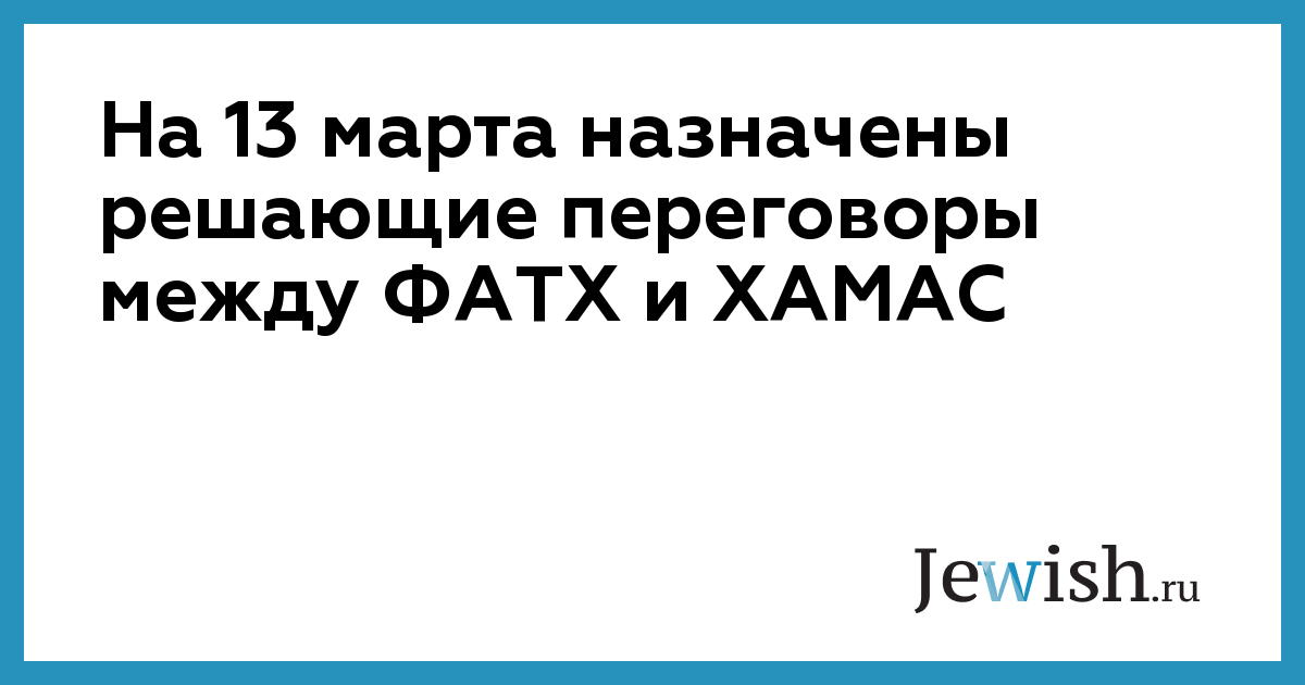 На 13 марта назначены решающие переговоры между ФАТХ и ХАМАС