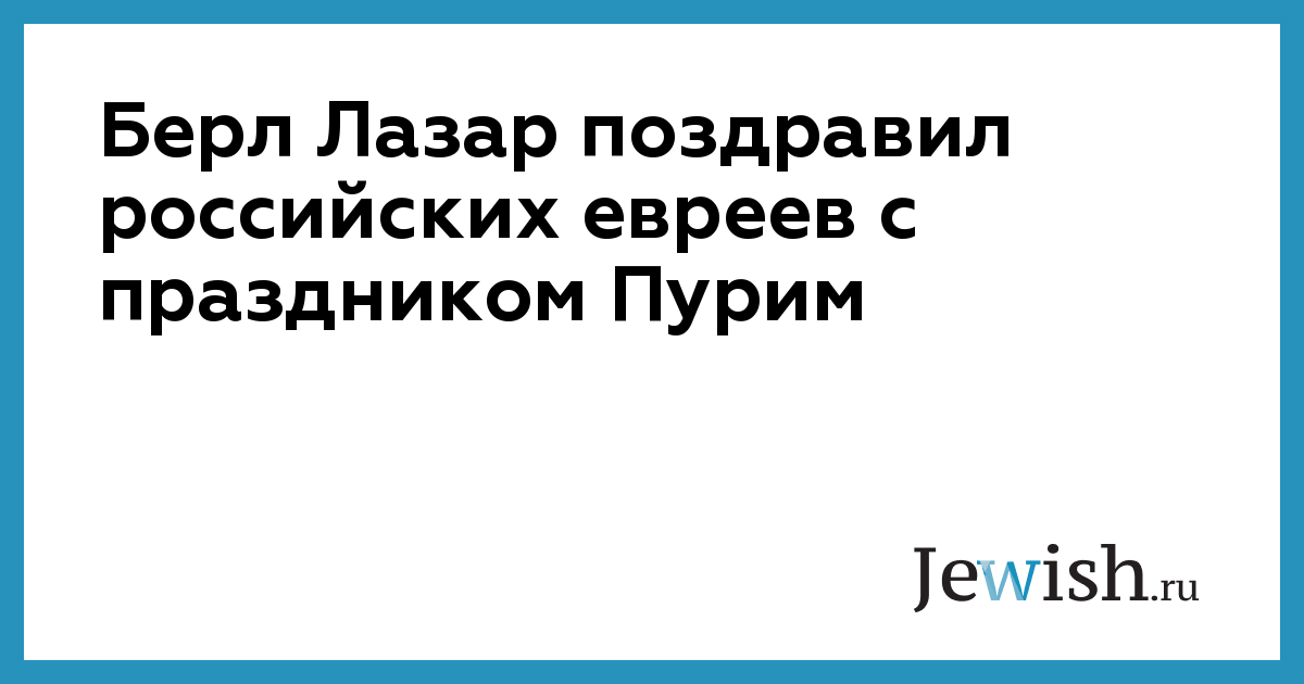 Берл Лазар поздравил российских евреев с праздником Пурим
