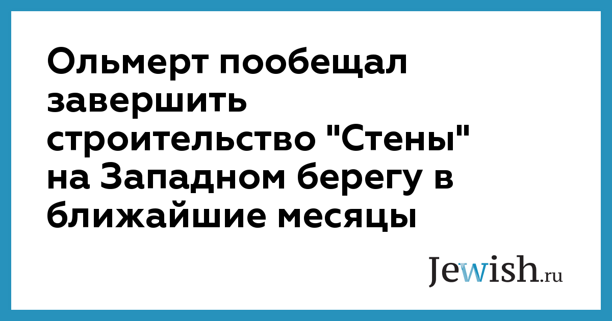 Исполняющий обязанности премьер-министра Израиля Эхуд Ольмерт пообещал в ближайшие месяцы завершить строительство системы разделительных сооружений на Западном берегу реки Иордан.