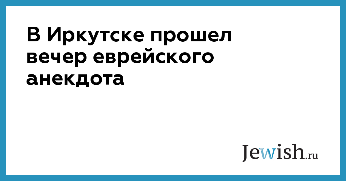 Вечер еврейского анекдота прошел в областной школе искусств. Так еврейская община Иркутска решила отметить Пурим — праздник, во время которого всем исповедующим иудаизм предписано веселиться. Чтобы облегчить иркутским евреям исполнение этого завета, областной центр посетил знаменитый пародист Юрий Григорьев.