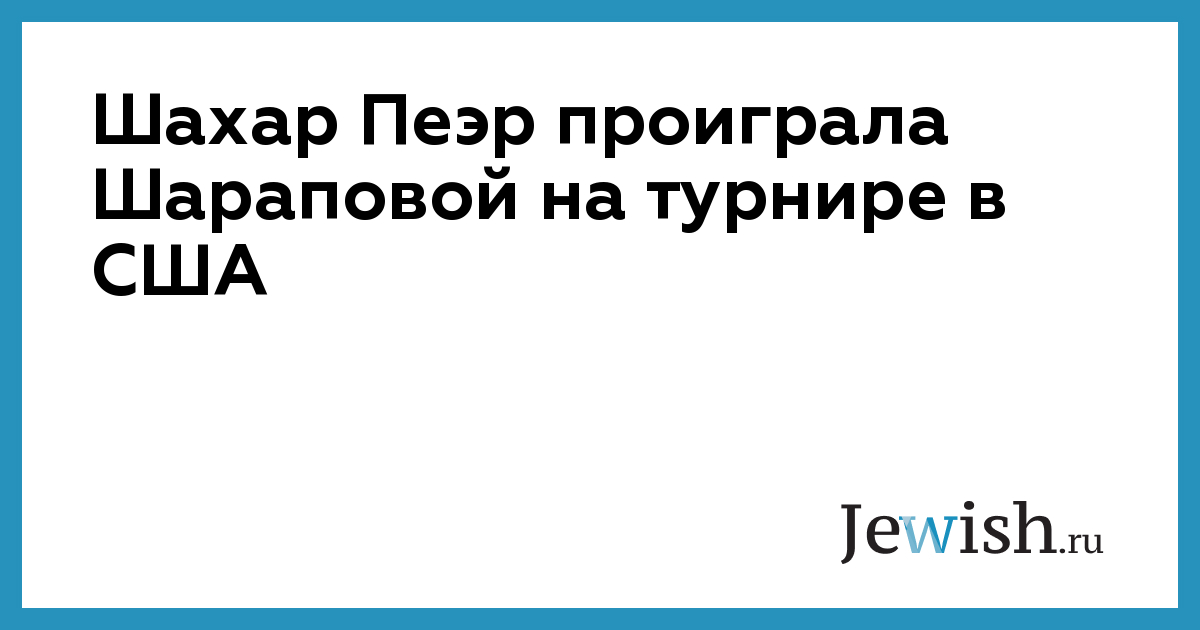 Шахар Пеэр проиграла Шараповой на турнире в США