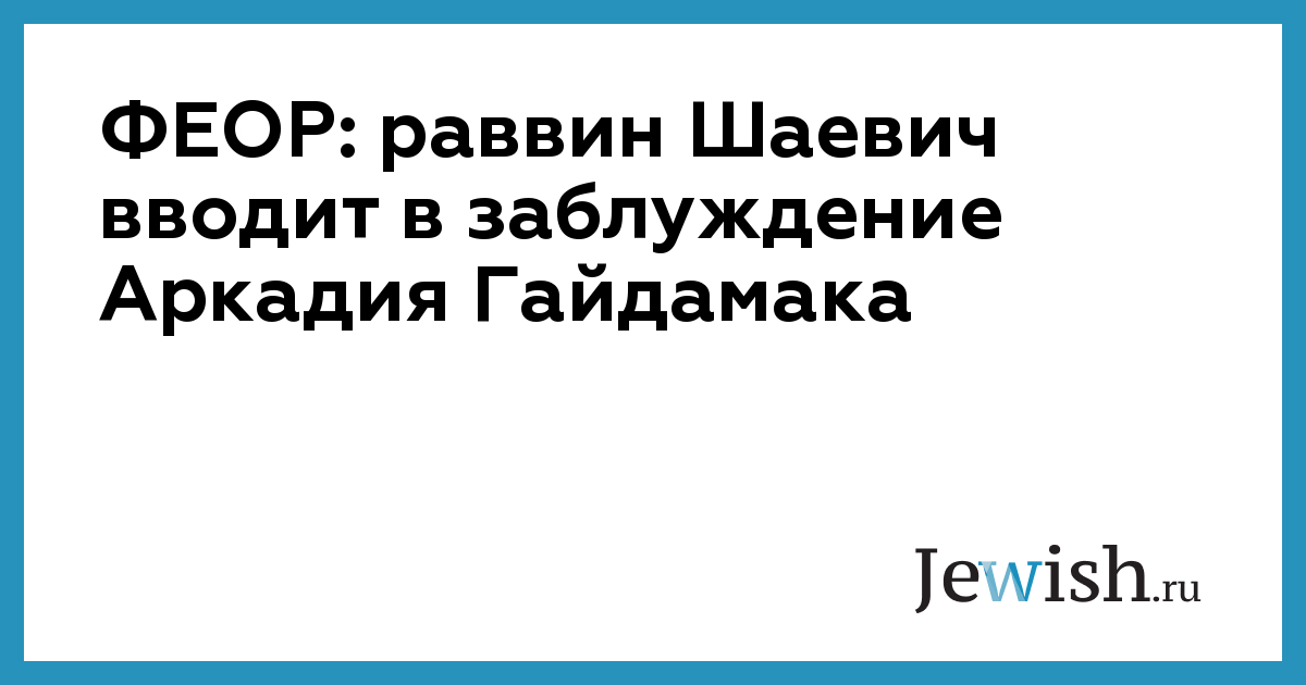 ФЕОР: раввин Шаевич вводит в заблуждение Аркадия Гайдамака