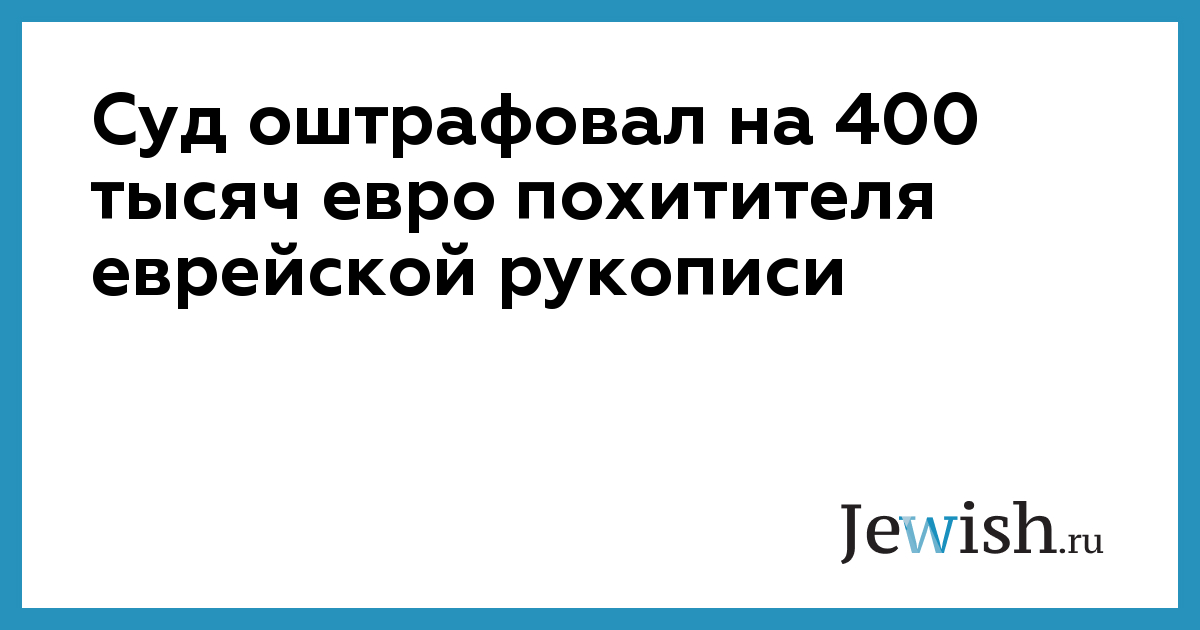 Суд оштрафовал на 400 тысяч евро похитителя еврейской рукописи
