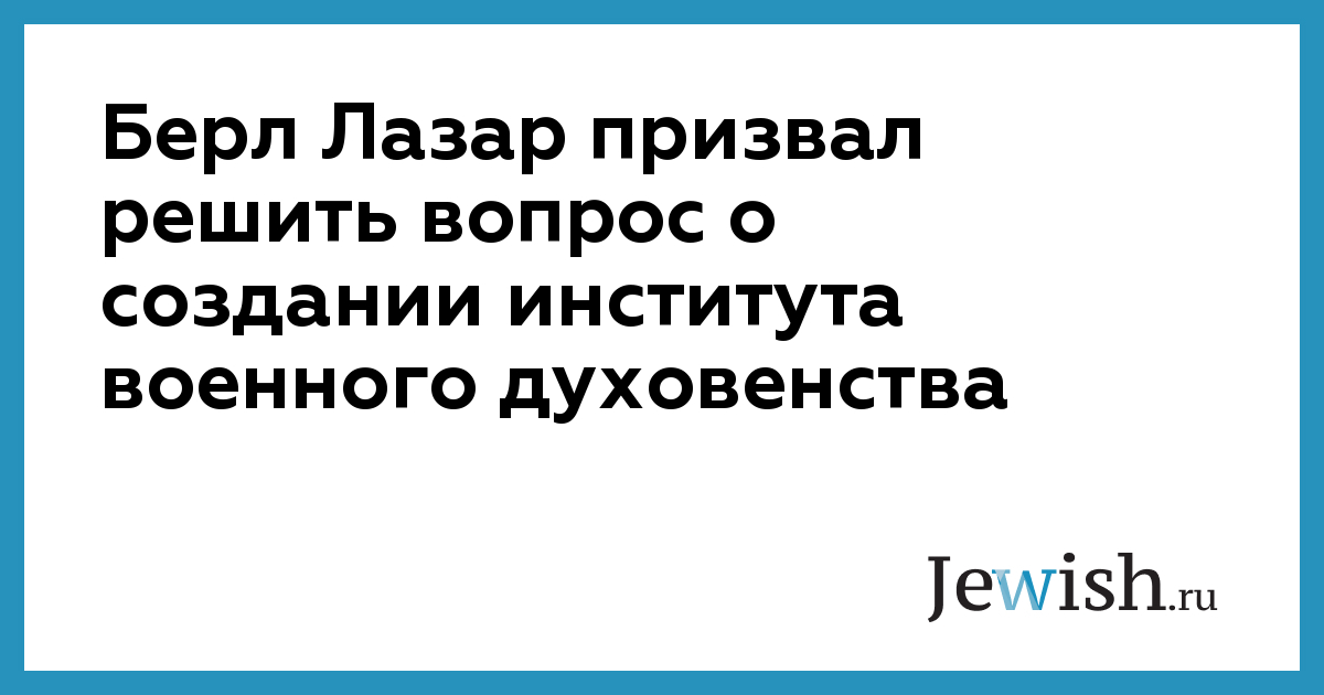 Главный раввин России Берл Лазар предложил провести межконфессиональную встречу по проблеме введения института военного духовенства.